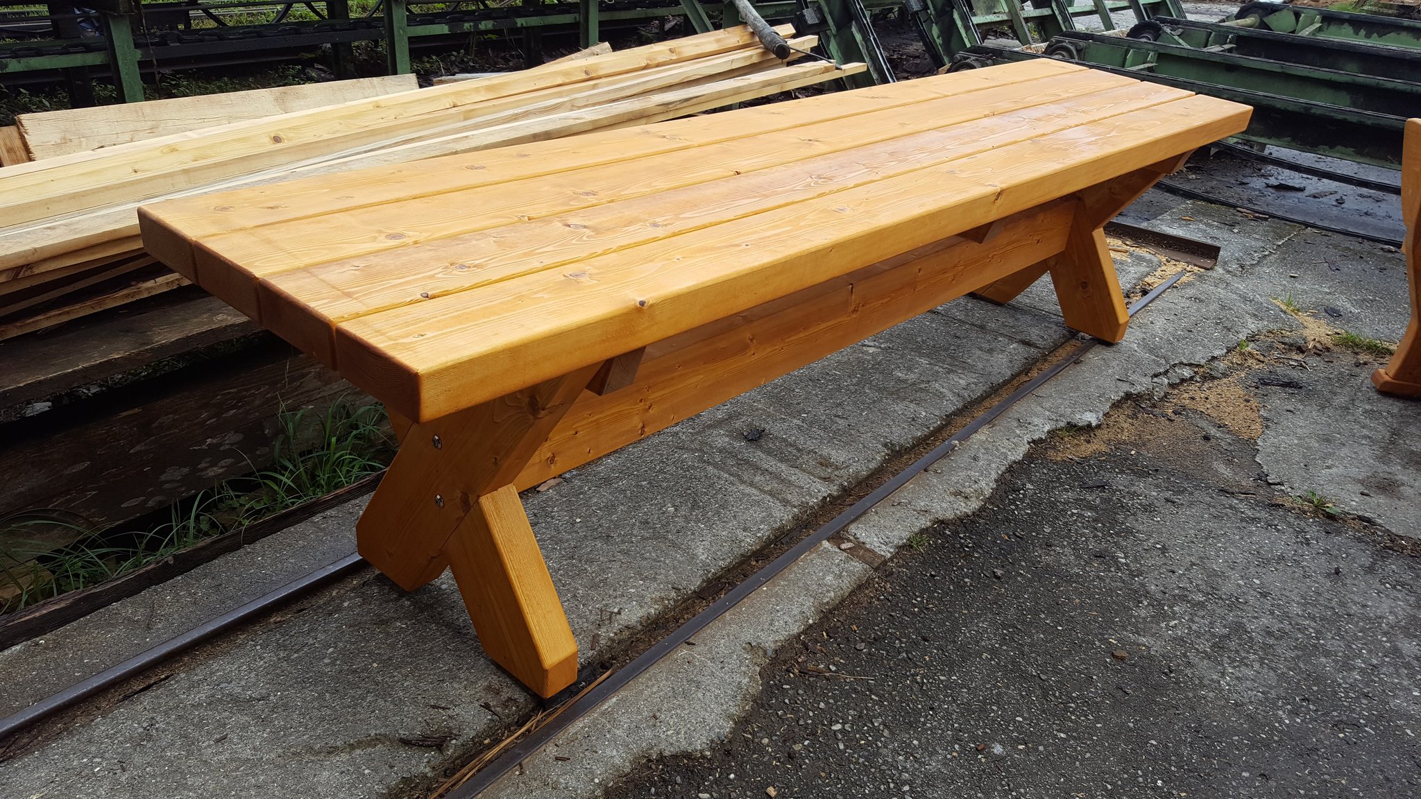 Kombination Holz & Metall, für Bänke / Tische etc.